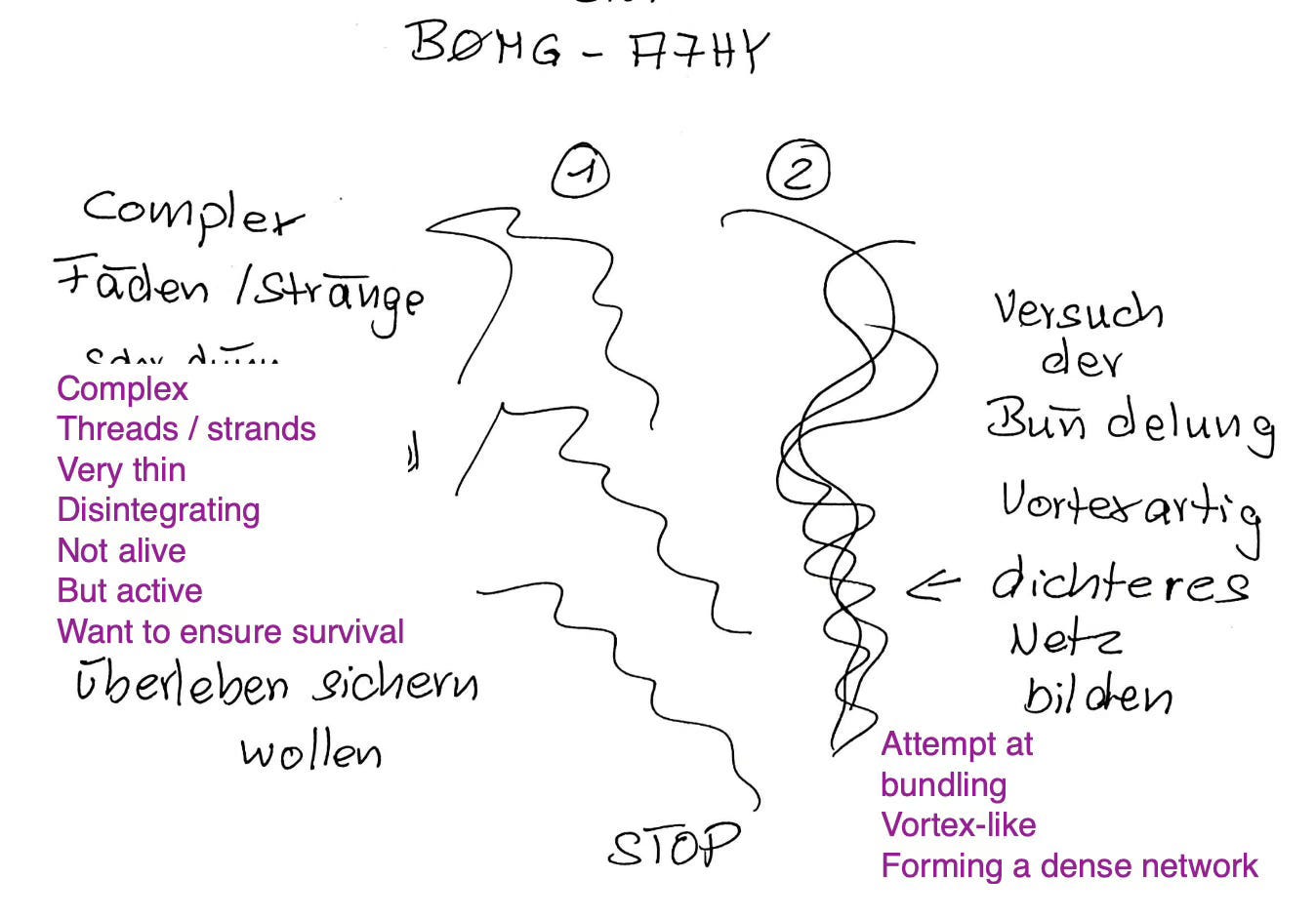 What’s more, here are some images from the sessions showing findings from blood tests after we started using Novalytic. It looks as if threads are being used as a basic structure here, with other substances clinging to them, thus forming a kind of guideline so that a complete network can be built up.